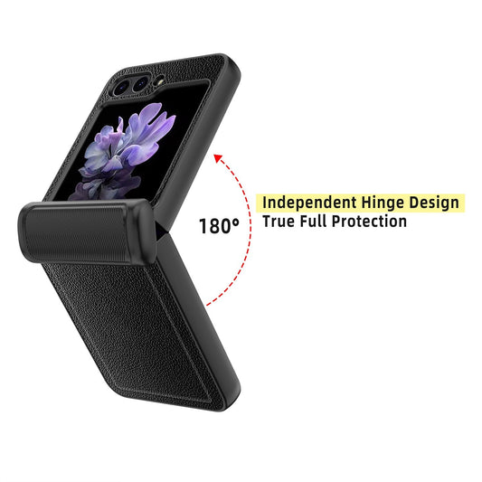 Leather Shockproof Cover with Front Screen Glass For Samsung Galaxy Z Flip 5